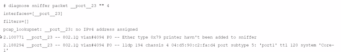 The use of the sniffer command on FortiSwitch CLI can be unreliable on port 23 for specific reasons related to the nature of traffic on the port: