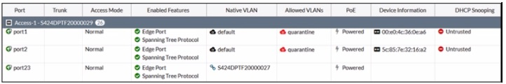 The exhibit shows the current status of the ports on the managed FortiSwitch. Access-1.
