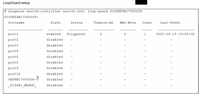 B . STP triggered a loop and applied loop guard protection on port1. If the Spanning Tree Protocol (STP) detects a loop or loss of BPDU transmissions while loop guard is enabled, it will proactively shut down the port to prevent network instability or a broadcast storm. This is an essential function of loop guard within the context of STP, providing additional protection against topology changes that could introduce loops.