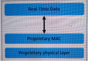 The correct answer is D. EtherCAT. The study guide explicitly states under the Ethernet/IP and EtherCAT section that ''EtherCAT is a protocol that offers real-time communication in a primary-secondary configuration'' and ''EtherCAT skips layers 3 to 6 to deliver real-time communication.'' It also adds that ''the most important feature of this protocol is that secondary devices collect only the information they need from the data packets.'' This matches the exhibit exactly, where the diagram shows Real-Time Data above a Proprietary MAC and Proprietary physical layer, reflecting the protocol structure that bypasses the intermediate OSI layers.