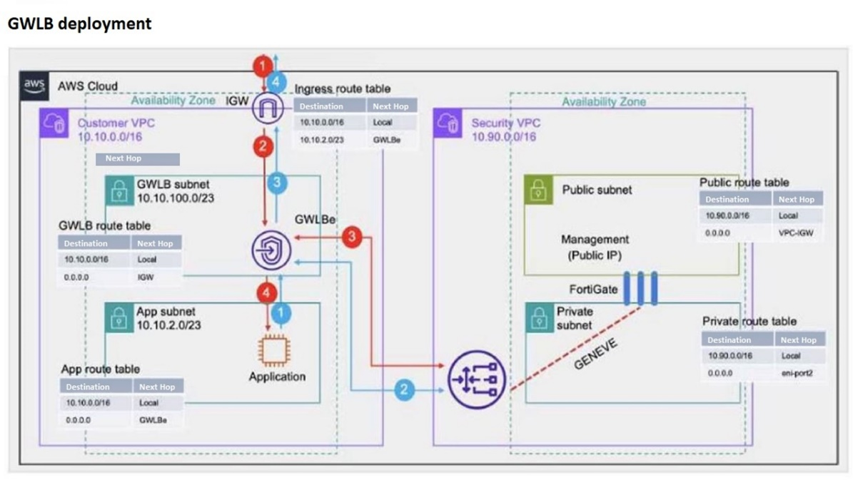 Option C is incorrect as the inbound traffic is directed to the GWLB endpoint first, not directly to the application subnet.