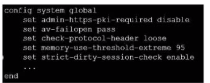 The configuration output shows various global settings for a FortiGate device. The terms NP (Network Processor) and CP (Content Processor) relate to FortiGate's hardware acceleration features. However, the provided configuration output does not directly mention the status (enabled or disabled) of NPs and CPs. Typically, the command to disable or enable hardware acceleration features would specifically mention NP or CP in the command syntax. Therefore, based on the output provided, we cannot conclusively determine the status of NPs and CPs, hence option D is the closest answer since the output does not confirm that they are enabled.