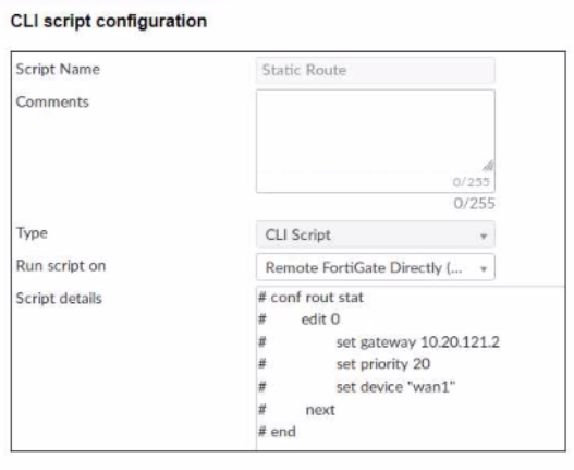 Refer to the exhibit, which contains a CLI script configuration on FortiManager.