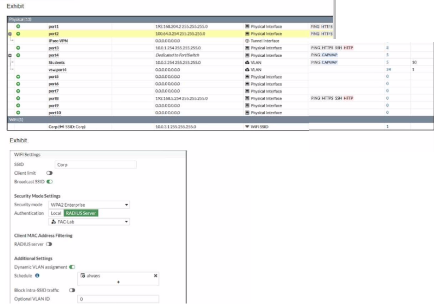 An administrator has configured FortiGate with an SSID (Corp) with dynamic VLAN assignment, and also configured a RADIUS server to send IETF 64, IETF 65, and IETF 81 VSAs.
