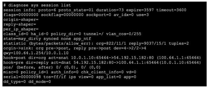 Refer to the exhibit, which shows the output of diagnose sys session list.