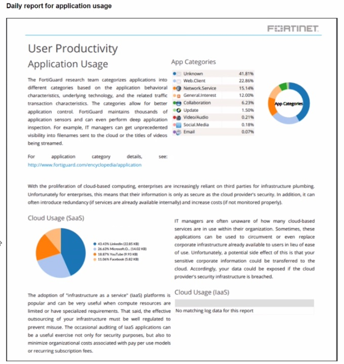Application Control Monitor Setting (B): Even when an application is correctly identified, it must be properly logged to appear accurately in the 'Daily report for application usage'. In the inline-CASB (Application Control) profile, categories are assigned actions such as 'Allow', 'Block', or 'Monitor'. If categories are set to 'Allow' instead of Monitor, the traffic is permitted but granular session details---including the specific application category---may not be logged for reporting purposes, causing them to be grouped into an 'Unknown' or 'Uncategorized' bucket in high-level summaries.