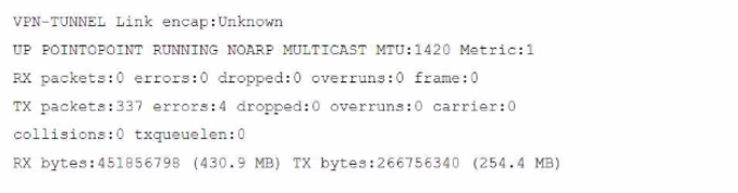 You have configured a Site-to-Site IPsec VPN tunnel between a FortiGate and a third-party device but notice that one of the error counters on the tunnel interface keeps increasing.