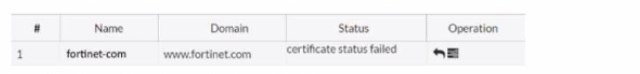 You are configuring a Let's Encrypt certificate to enable SSL protection to your website. When FortiWeb tries to retrieve the certificate, you receive a certificate status failed, as shown below.