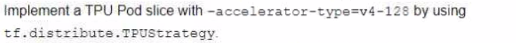 You are pre-training a large language model on Google Cloud. This model includes custom TensorFlow operations in the training loop Model training will use a large batch size, and you expect training to take several weeks You need to configure a training architecture that minimizes both training time and compute costs What should you do?