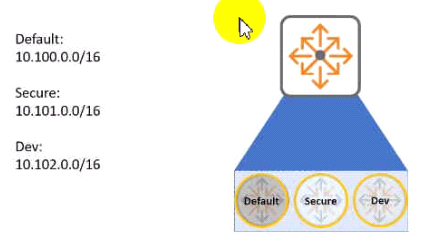 Aruba CX 6300 switch has routes in three different VRFs as per the example above. The user needs to leak routes between VRF Secure and VRF Dev. and also between VRF default and VRF Dev