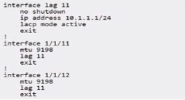 In the context of ArubaOS-CX, particularly with the 6300 series switches, setting the MTU on a routed Link Aggregation Group (LAG) interface requires the interface lag id command in the configuration, specifying the LAG interface you're configuring. The ip mtu command is then used to set the desired MTU size for that LAG. Option A correctly shows this configuration process, where the MTU is set to 9198 for the LAG interface, in line with the requirements for routing larger frames, which could be necessary for certain applications or data flows that require jumbo frames.