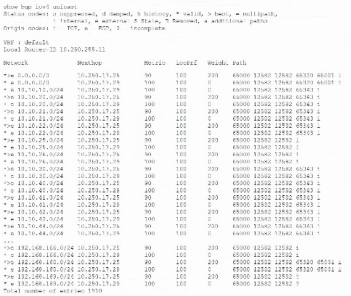Two companies have merged, and BGP is used for routing. The customer has informed you that they currently have about 3600 routes in the routing table and would like to keep the total number of routes below 5000 A BGP routing table from the company to be merged is provided as an example below: