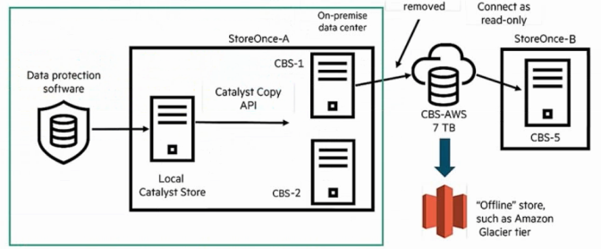 A junior engineer is expanding a StoreOnce deployment for a law firm with a hybrid environment. The customer already has Veeam backing up to StoreOnce 3660 Gen 4 at both primary and secondary sites. They want to add Cloud Bank Storage (CBS) to archive into AWS Glacier tier for compliance. The junior engineer has added Cloud Bank licenses for the 80TB onsite capacity at the primary office.