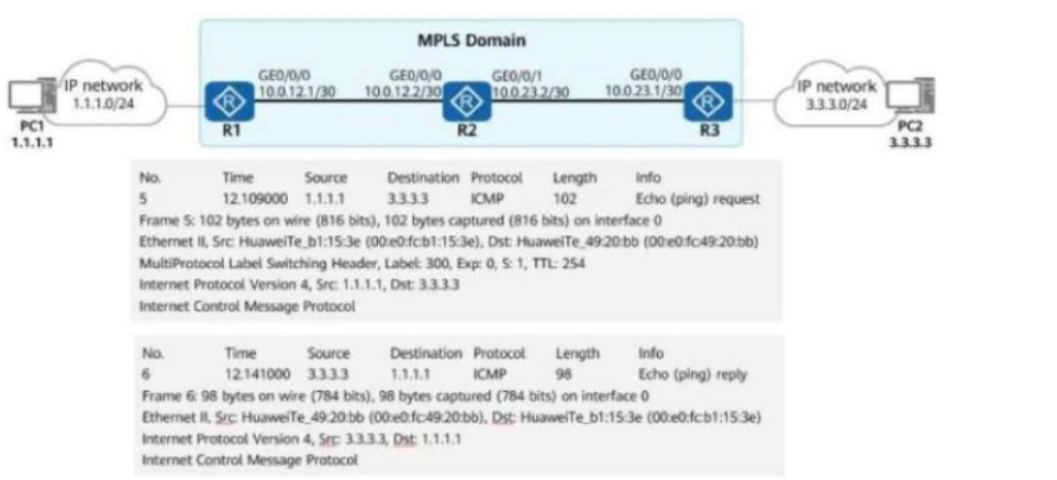 If R3 were using an IP route, there would be no MPLS label in the packet.