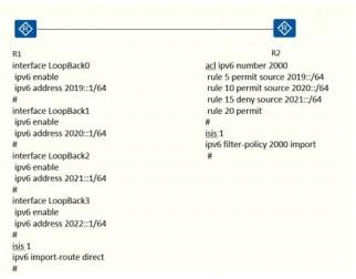 As shown in the following figure, R1 and R2 establish a neighbor relationship with LeveL2, and the key configuration is as follows, so is the following route entry for R2 correct?