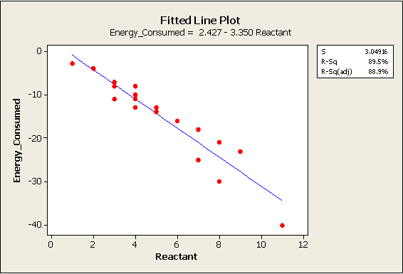 Which statement(s) are true about the Fitted Line Plot shown here? (Note: There are 2 correct answers).