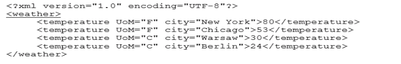 The XPath expression //temperature[city='Berlin']/text() will return the temperature in Berlin, which is 24.