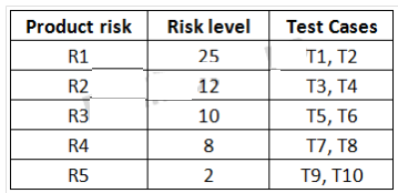 The following table shows the risk level and the test cases associated to the identified product risks (higher risk level means higher risk):