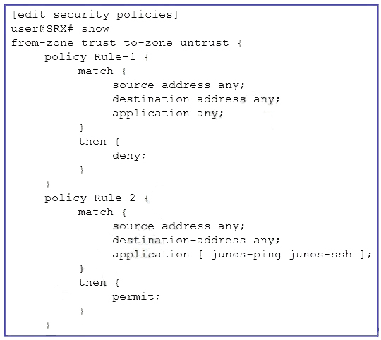 You are asked to allow only ping and SSH access to the security policies shown in the exhibit.