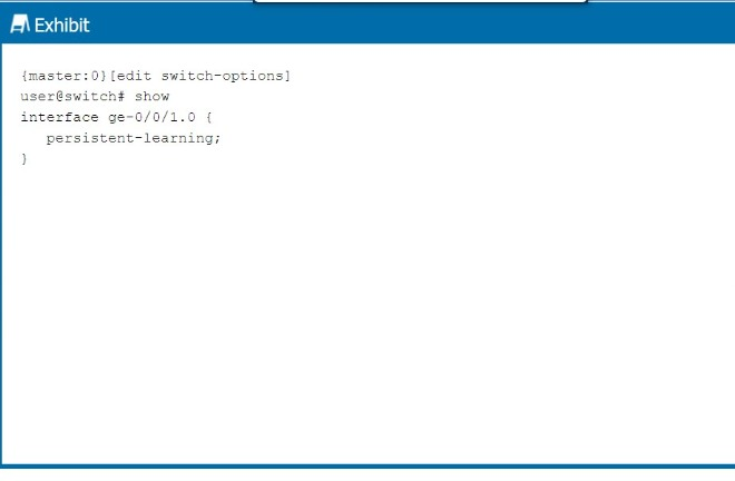 The configuration in the exhibit shows the persistent-learning feature enabled on interface ge-0/0/1.0.