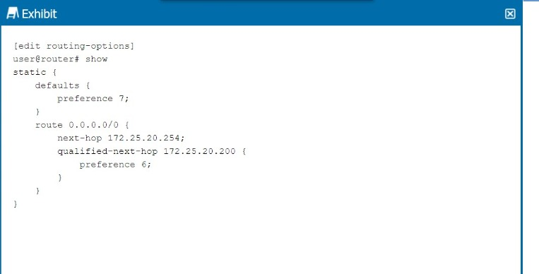 next-hop 172.25.20.254 with the default preference of 7.