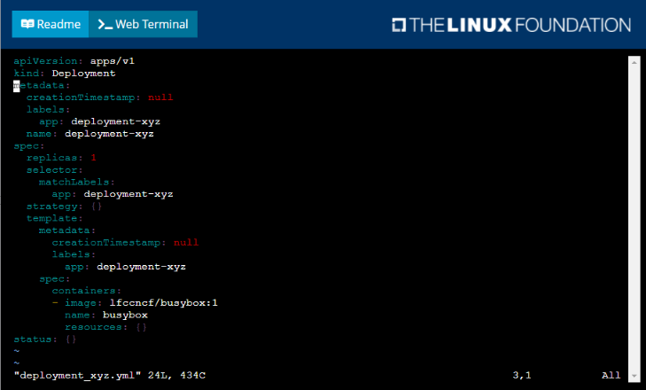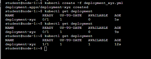 * Create a deployment named deployment-xyz in the default namespace, that: