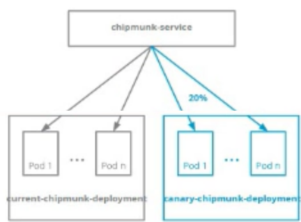 20% of the chipmunk-service 's traffic goes to the canary-chipmunk-deployment Pod