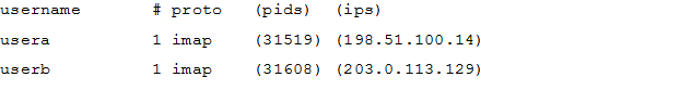 Which doveadm sub-command displays a list of connections of Dovecot in the following format? (Specify ONLY the command without any parameters.)