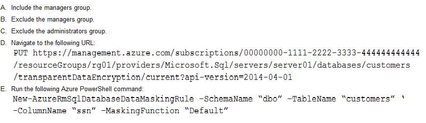 Note: The New-AzureRmSqlDatabaseDataMaskingRule cmdlet creates a data masking rule for an Azure SQL database.