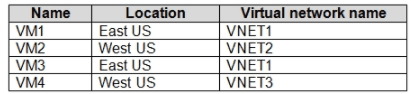 You have an Azure subscription that contains the virtual machines shown in the following table.