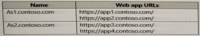 You have two Azure App Service instances that host the web apps shown the following table.