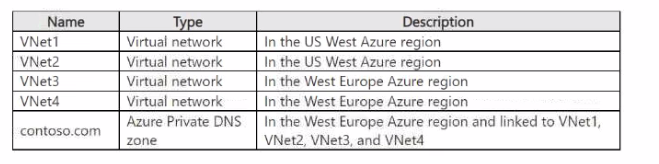 * Resources connected to the virtual networks must be able to resolve DNS names for fabrikam.com.