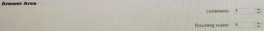 What is the minimum number of listeners and routing rules you should configure? To answer, select the appropriate options in the answer area.