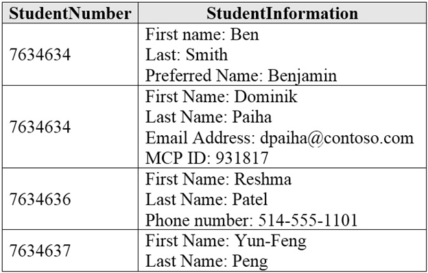 Your company is designing a data store that will contain student dat