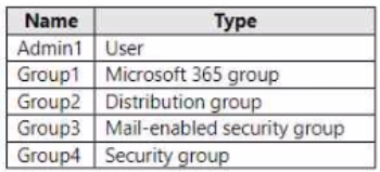 You have a Microsoft 365 tenant that contains the objects shown in the following table.
