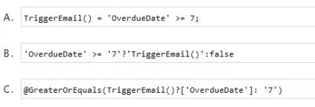 A Company plans to send escalation emails to all customers with overdue invoices. You are creating a Microsoft Power Automate flow to determine whether to send an escalation email.