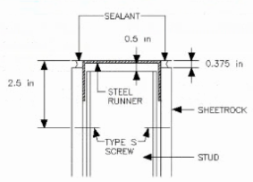 The detail shows a steel runner with sheetrock and screws, typical for drywall suspended ceiling assemblies.
