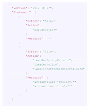 For Cloud Data Sense to effectively scan S3 buckets, it requires permissions to list and get objects within the buckets. From the IAM policy provided in the exhibit, the permissions currently include s3:PutObject for object creation and a series of IAM-related permissions such as iam:GetPolicyVersion, iam:GetPolicy, and iam:ListAttachedRolePolicies. However, for scanning purposes, Data Sense needs to read and list the objects in the buckets. Therefore, the missing permissions are: