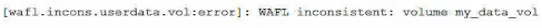 = The error message indicates that the volume my_data_vol is WAFL inconsistent, which means that there is a discrepancy between the data blocks and the metadata in the file system. This can be caused by various factors, such as hardware failures, software bugs, power outages, or network disruptions.The first action to correct this issue is to determine the root cause behind the inconsistency before attempting any recovery procedure, as recommended by the NetApp documentation1. This is because some recovery procedures, such as wafliron or storage takeover, may not work or may cause further damage if the underlying cause is not resolved. For example, if the inconsistency is due to a faulty disk or shelf, running wafliron may not fix the problem and may even corrupt more data.Therefore, it is important to identify and isolate the cause of the inconsistency before taking any further steps.Reference=1Volume Showing WAFL Inconsistent - NetApp Knowledge Base
