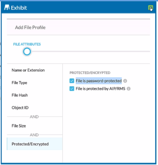 You are attempting to block uploads of password-protected files. You have created the file profile shown in the exhibit.