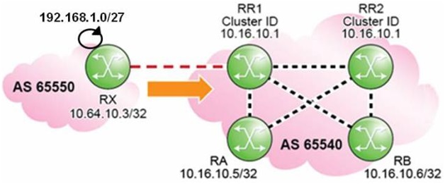 Routers RR1 and RR2 are route reflectors with the same Cluster-ID. When the update for prefix