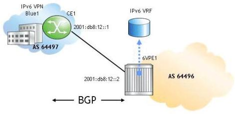 Which of the following is the correct configuration on 6VPE1 for a BGP peering session with CE1?