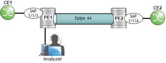 An operator at PE1 wants to analyze the traffic between CE1 and PE1 on SAP 1/1/3, On an Nokia 7750 SR, which of the following is NOT required as part of the configuration?