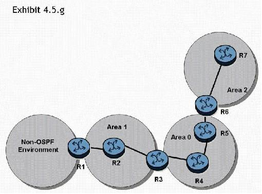 In the topology shown, router R1 is an ASBR configured to export external routes to OSPF. Assuming that there are no stub networks, which of the following statements regarding type 4 LSA generation is true?