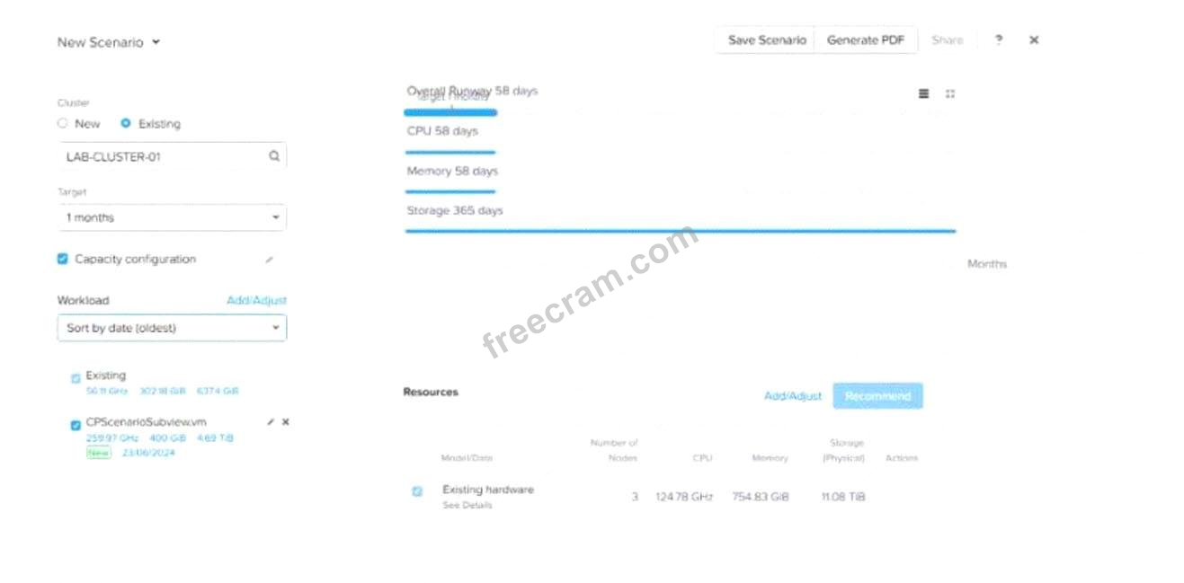 After adding new workloads, why isOverall Runway below 365 daysandthe scenario still shows the cluster is in good shape?