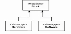Which package diagram fragment depicts the definitions of the stereotypes Hardware and Software?