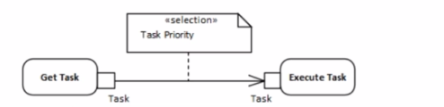 UML 2.5 Specification: The UML 2.5 specification describes how selection behaviors can be applied to object flows to filter objects according to specific criteria, such as priority in this scenario.