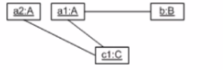 Option B has similar issues where two instances of A (a2 and a1) are linked to a single instance of C, which violates the '1..2' multiplicity rule.