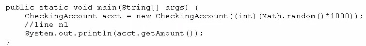 Which three lines, when inserted independently at line n1, cause the program to print a 0 balance?