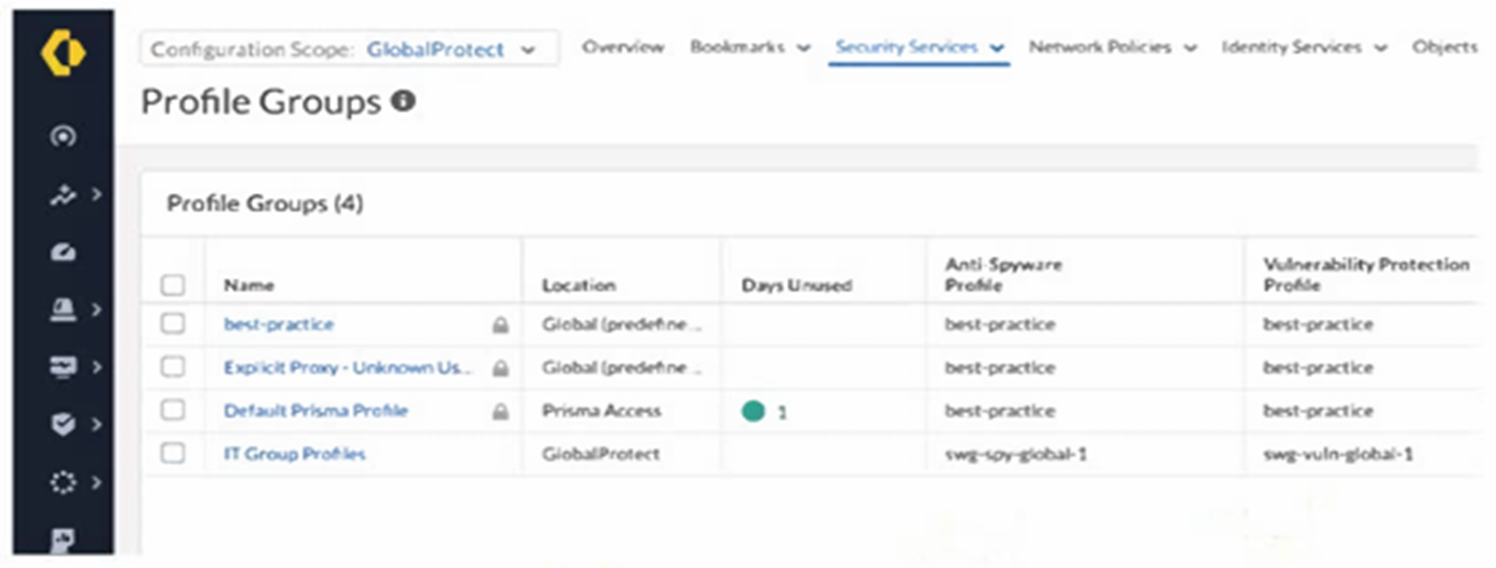 Modify Security Rules: The security rules currently using the 'Default Prisma Profile' in the GlobalProtect folder need to be modified to use this newly created profile group.